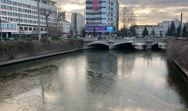 Eskişehir'de eksi 6 dereceye kadar düşen hava sıcaklığından dolayı Porsuk Çayı'nın yüzeyi buz tuttu.