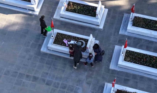 El ele verip şehitlikte temizlik yaptılar
