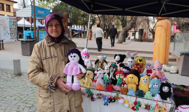 5 yıldır örgü bebek yapan 58 yaşındaki Nazmiye Köymen, hem kendi hayal gücünü kullanarak hem de internetten ilham alarak ilginç bebekler örüyor. Birbirinden farklı örgü bebekler, Tarihi Odunpazarı Evleri Bölgesi'nde satışa sunuluyor. El emeği göz nuru ürünleri ile kendisine yeni bir gelir kapısı aralayan Köymen, aynı zamanda aile ekonomisine katkıda bulunuyor. Köymen, tezgahına gelen yabancı turistlerle çeviri uygulaması kullanarak iletişim kuruyor.