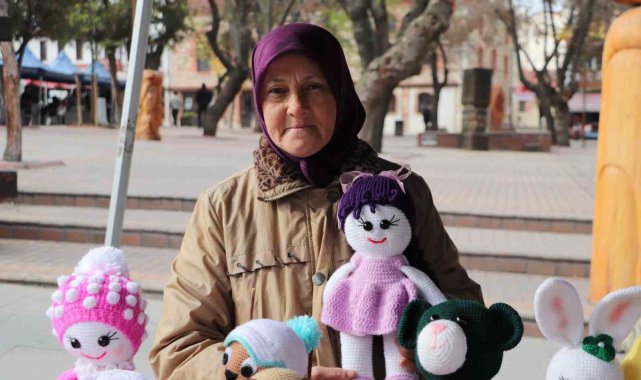 Eskişehir'de yaklaşık 5 yıldır örgü bebek yapan 58 yaşındaki kadın, Tarihi Odunpazarı Evleri bölgesinde satış yaparak aile ekonomisine katkı sağlıyor.