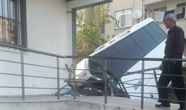 Kocaeli'nin Çayırova ilçesinde el freni boşalan park halindeki midibüs, apartman duvarına çarparak durabildi. Aracın boş olması ve çevrede kimsenin olmaması sebebiyle şans eseri yaralanan olmadı. Kaza anı güvenlik kamerasına yansıdı.