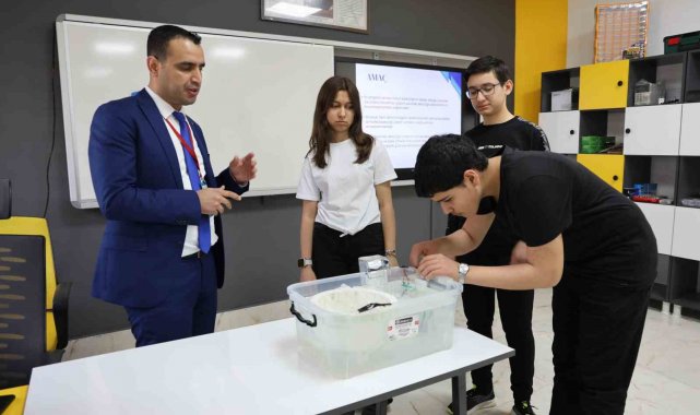 Projeleri ile girdikleri TÜBİTAK bölge finalinde birinci olan öğrencilerden Ahmet Yasin Ateş uygulamalı olarak projelerini tanıttı.