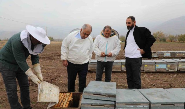 Elazığ'ın yüksek yaylalarında yetişen geven bitkisinden üretilen Coğrafi İşaretli Geven Balı, arıcıların özverili çalışmaları, arıların doğayla kurduğu uyum ve bölgenin kendine özgü iklimi sayesinde eşsiz bir lezzet kazanıyor. Elazığ Tarım ve Orman İl Müdürü Saadettin Taşkesen, Elazığ Arı Yetiştiricileri Birliği Başkanı Fırat Canbay ve arıcılık birimi personeli, Çağlar Köyü'nde arıcıları ziyaret ederek kolonilerde yürütülen sonbahar ve kış hazırlıklarını yerinde inceledi. Yapılan kontrollerde, ana arı performansından zayıf kolonilerin birleştirilmesine, beslenme ve varroa mücadelesine kadar sezonun kritik aşamalarının titizlikle yürütüldüğü görüldü.