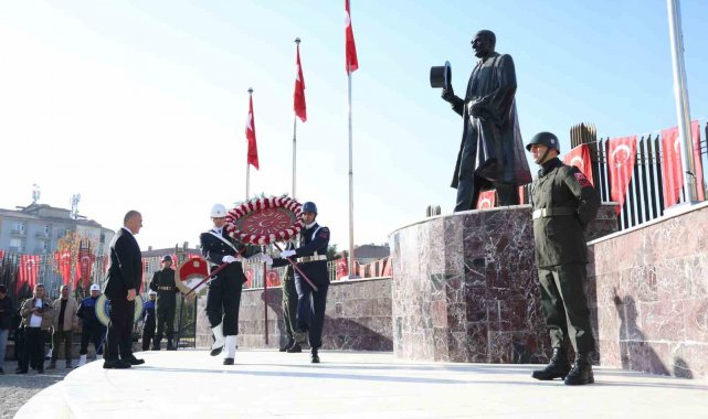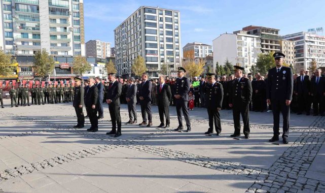 Elazığ Valiliği önündeki meydanda gerçekleştirilen törende, Atatürk Anıtı'na çelenk sunumu yapıldı. Çelenkleri sırasıyla Elazığ Valisi Numan Hatipoğlu, 8. Kolordu Komutanı Tuğgeneral Ümit Durmaz ve Elazığ Belediye Başkanı Şahin Şerifoğulları sundu.