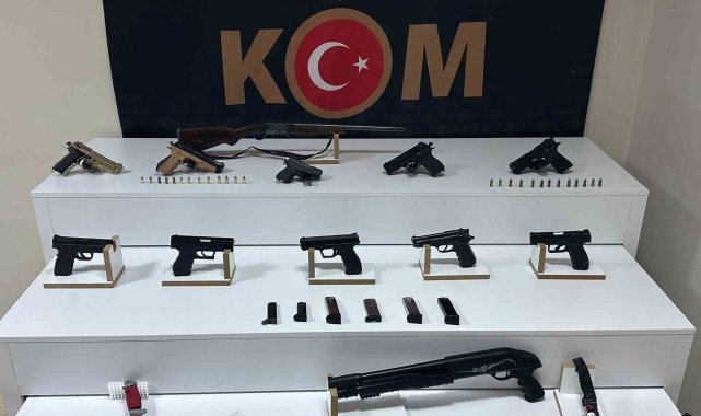 Operasyonda yapılan aramalarda ise 12 adet ruhsatsız tabanca ve tabancalara ait 137 adet fişek, 2 adet tüfek ve 14 adet kartuş, 2 adet pala olarak tabir edilen kesici alet, 70 gram sentetik kannobinoid maddesi, 236 adet sentetik ecza maddesi ele geçirildi.