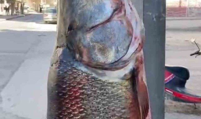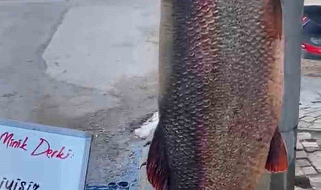 Elazığ'da bir balıkçı, 97 kilogram ağırlığında, 2 metre uzunluğunda turna balığı yakaladı.