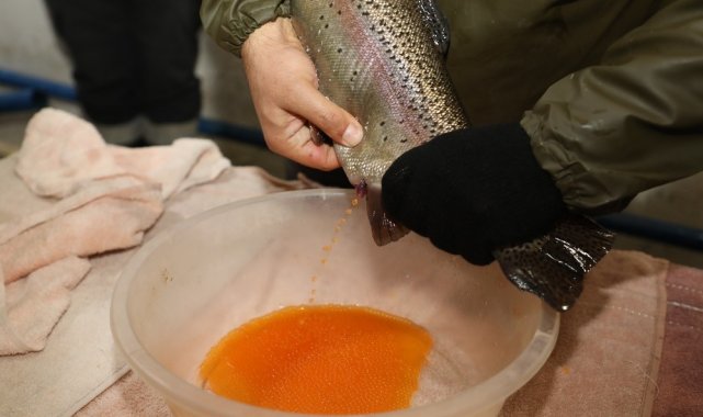 Elazığ Tarım ve Orman İl Müdürü Saadettin Taşkesen, Keban Su Ürünleri Üretim İstasyonu'nda yürütülen alabalık sağım çalışmalarına katılarak üretim ekibiyle birlikte alabalık sağımı yaptı. Sağım sırasında dişi alabalıklardan alınan yumurtalar kaplara özenle toplandı; ardından erkek alabalıklardan elde edilen sperm, yumurtalarla birleştirilip dikkatlice karıştırıldı. Karışımın iki dakika dinlendirilmesinin ardından su eklenerek yaklaşık otuz dakika bekletildi. Temizlenen yumurtalar daha sonra kuluçka dolaplarına yerleştirildi. Su sıcaklığına bağlı olarak 30-40 gün içerisinde açılması beklenen yumurtaların, kuluçka döneminde su akışı, oksijen seviyesi ve sıcaklık değerlerinin düzenli olarak kontrol edilerek takip edildiği bildirildi.