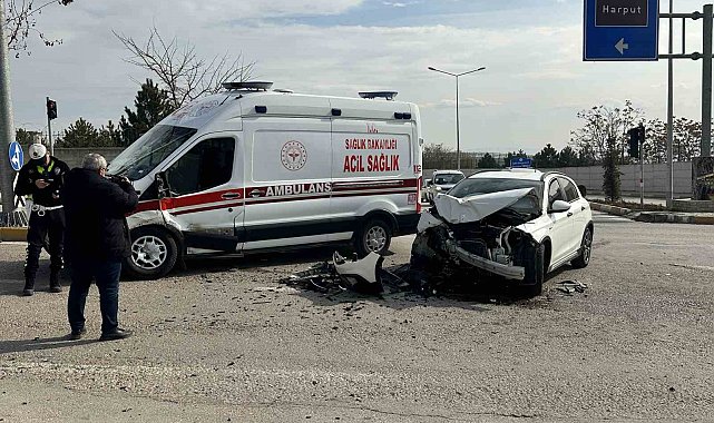 Elazığ'da ambulans ile otomobilin çarpışması sonucu meydana gelen trafik kazasında her iki aracın sürücüsü yaralandı.