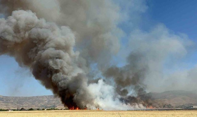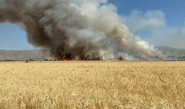 Elazığ merkez Yazıkonak beldesinde ekili alanda çıkan yangın nedeni ile onlarca dönüm alanda ekili hububat kül oldu.