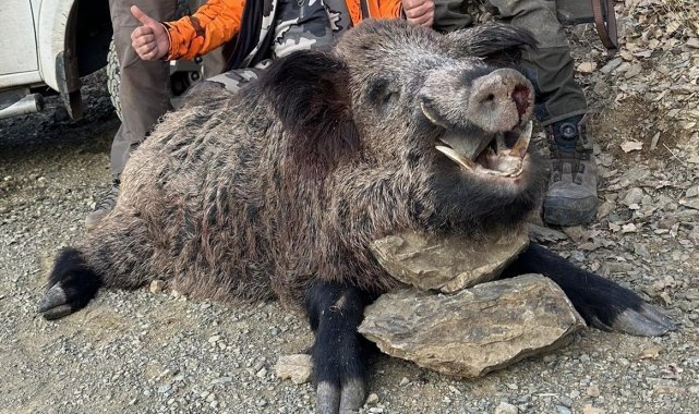 Av turizmi kapsamında yurtdışından gelen yabancı avcılar, Elazığ'da dağlık alanlarda 200 kilo ağırlığında yaban domuzu avladı.