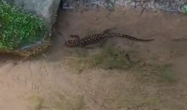 Elazığ'ın Palu ilçesinde bir derede nadir görülen sarı benekli semenderi fark eden bir vatandaş, o anları cep telefonu kamerasıyla kayıt altına aldı. Derede yüzerken görüntülenen semender bir süre sonra gözden kayboldu.