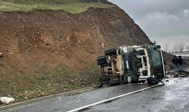 Elazığ'da yağıştan dolayı sürücüsünün direksiyon hakimiyetini kaybettiği beton pompa aracı yan yattı. Kazada 1 kişi yaralandı.
