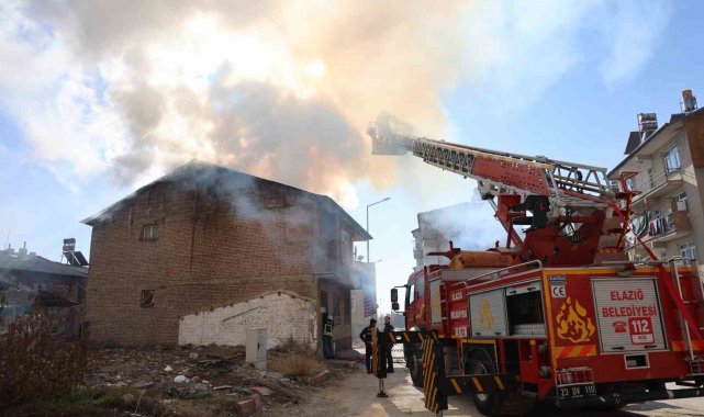 Elazığ'da 2 katlı bir binanın çatısında çıkan yangın, itfaiye ekipleri tarafından kısa sürede kontrol altına alınarak söndürüldü.