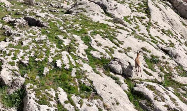 Elazığ, zengin doğal yaşamı ve dağlık coğrafyasıyla birçok yabani hayvana ev sahipliği yapıyor. Doğa fotoğrafçıları ve yaban hayatı meraklıları için büyük bir potansiyel barındıran bölge, yaban keçileri gibi nadir türlerin yaşaması için elverişli bir ortam sunuyor. Bu çerçevede Elazığ'ın Göllübağ Köyü yüksek kesimlerinde, koruma altındaki dağ keçileri doğa fotoğrafçısı Mustafa Sönmez tarafından dron ile görüntülendi. Sarp kayalıklarda sürü halinde görüntülenen keçiler, bir süre sonra gözden kayboldu.