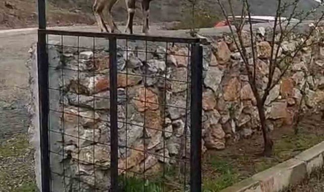 Elazığ'da dağ keçisi evin duvarına tırmandı