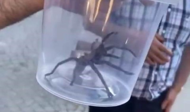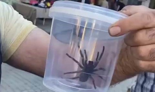 Elazığ merkezde bulunan tarihi Kapalı Çarşı civarında vatandaşlar siyah bir cisim ile karşılaştı. Vatandaşlar yaklaştıklarında hareket eden nesnenin ortalamanın çok üzerinde bir büyüklüğe sahip örümcek olduğunu gördü. Plastik bir kap alan vatandaşlar hayvanı içine bırakıp korumaya aldı.