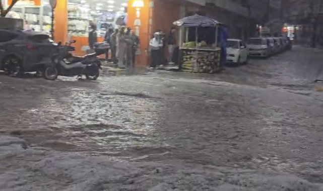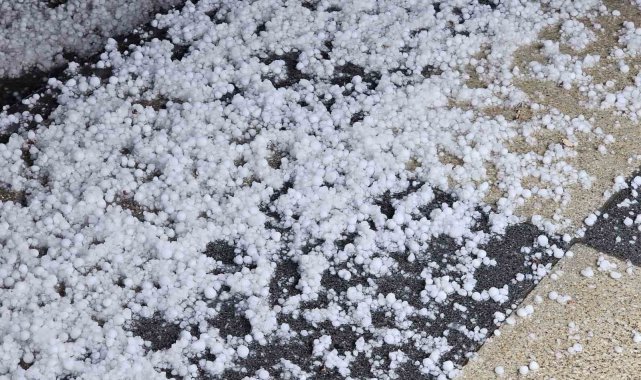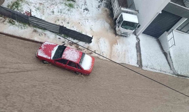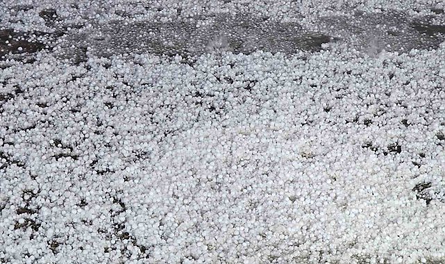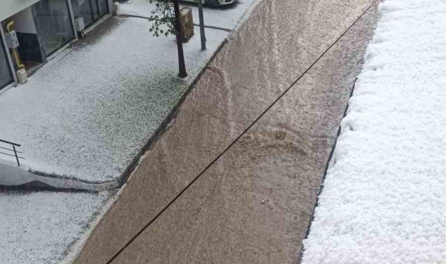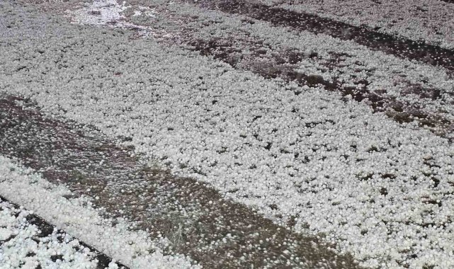 Meteorolojinin uyarıda bulunduğu Elazığ'da yağmurla birlikte dolu etkili oldu. Dolu sonrasında kentin birçok noktası beyaza büründü.
