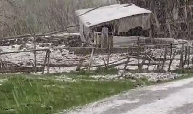 Elazığ'ın Karakoçan ilçesinde misket büyüklüğünde dolu yağdı.