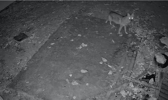 Elazığ'da yiyecek arayan çakal güvenlik kameraları tarafından görüntülendi.