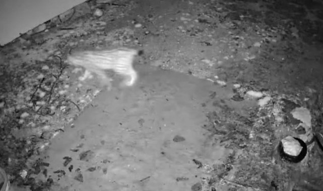 Elazığ'da evin etrafında yiyecek arayan vaşak güvenlik kameraları tarafından görüntülendi.