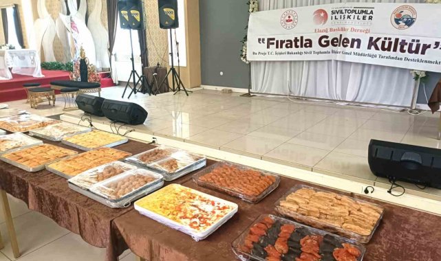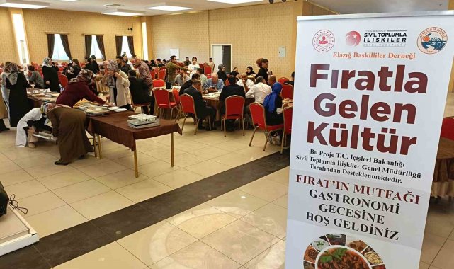 Elazığ Baskilliler Derneği, Fırat'la Gelen Kültür Projesi kapsamında Fırat'ın Gastronomisi adlı özel bir etkinlik gerçekleştirdi. Yoğun ilgi gören programda, Fırat havzasına özgü geleneksel yemekler, tatlılar ve unutulmaya yüz tutmuş yöresel yiyecekler davetlilerin beğenisine sunuldu. Etkinlikte lise öğrencilerine Elazığ mutfağının zenginliği tanıtıldı, çeşitli yöresel ürünler ikram edildi. Gençlerin kültürel mirası tanımaları, sahiplenmeleri ve geleceğe aktarmaları hedeflenirken, fast food ve zararlı beslenme alışkanlıklarının olumsuz etkileri konusunda bilgilendirme yapılarak sağlıklı beslenmenin önemi vurgulandı. Ayrıca, program kapsamında gastronomi uzmanları ve bölgede yaşayan ev hanımları, bölgenin yemek kültürünün Anadolu'daki yeri ve önemi üzerine sunumlar gerçekleştirdi. Etkinliğe katılan öğrenciler ve ilçe protokolü, hem Elazığ mutfağının zengin çeşitliliğini tatma imkanı buldu hem de Fırat kültürünün tarihsel birikimi hakkında bilgi edindi.