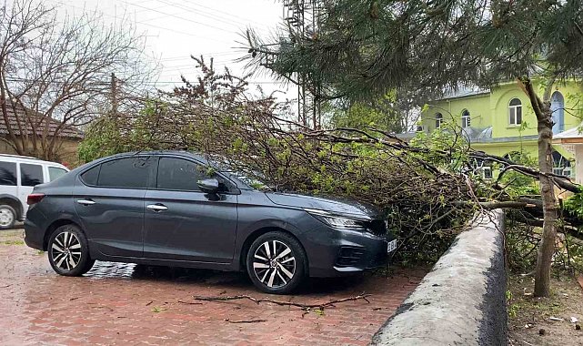 Elazığ'da fırtına etkili oldu: Ağaç, araçların üzerine devrildi
