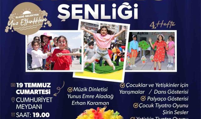 Etkinlikte çocuklar için özel olarak hazırlanan Şirin Sesler adlı tiyatro oyunu sahnelenecek olurken, yetişkinler ise Kızına Bak Anasını Al ve Aile Dertleri adlı oyunlar düzenlenecek. Ayrıca programda dans gösterileri, yarışmalar, palyaço gösterileri ve müzik dinletileri de yer alacak. Elazığlılara unutulmaz bir yaz akşamı yaşatmayı hedefleyen şenlik, ücretsiz olacak.