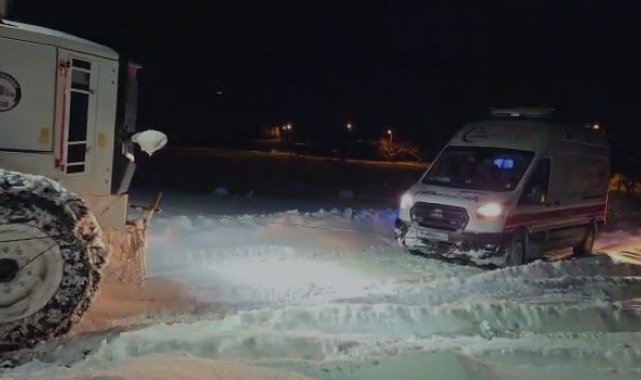 Elazığ'da hastaya giderken karda mahsur kalan ambulans kurtarıldı