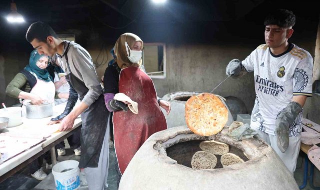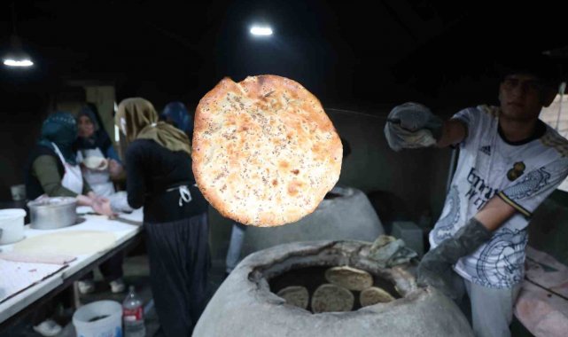 Elazığ'da kadınların yaptığı tandır ekmek için vatandaşlar kilometrelerce yol gelerek kuyruk oluşturuyor.