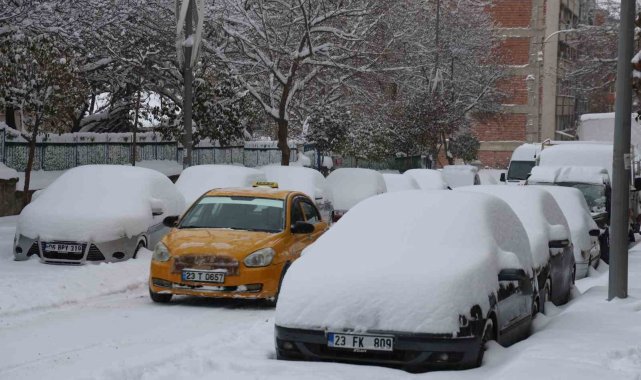Elazığ'da kar kalınlığı 20 santimetreyi buldu, araçlar görünmez hale geldi