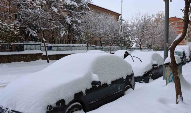 Elazığ'da dün akşam saatlerinde başlayan ve etkisini artırarak devam eden kar yağışı, kenti tamamen beyaza bürüdü. Gün boyu aralıksız süren yağış sonrası park halindeki araçlar, kar kütlelerinin altında adeta kayboldu. Şehir merkezinde ulaşım kontrollü sağlanırken, vatandaşlar kar kalınlığını metreyle ölçtü. Ahmet Muci, 20 santimetreyi bulan karın hem bereketi hem de zorluğu bir arada yaşattığını ifade etti. Muci, "Elazığ'ın yerlisiyim. Yaklaşık 20 yıldır böyle bir kar yağışı görülmemişti. Kar kalınlığı 20 santimetreyi buldu. Dünden beri aralıksız yağan kar şehrimizi beyaza bürüdü. Biz de burada şehitlerimizin başında hem Fatiha'mızı okuduk hem de güzel bir kar gününü yaşadık. Kar berekettir. Bu görüntü, hem ülkemiz hem şehrimiz hem de barajlarımız için son derece güzel ve umut verici. Allah rahmetini zahmete çevirmesin diyelim. Aynı zamanda araçlar da, görüldüğü gibi her yer de kar altında. Soğuk bir hava var ama ortaya çıkan manzara insanın içini ısıtıyor. Bunlar gerçekten güzel görüntüler" dedi.