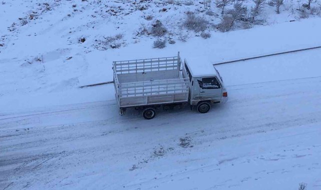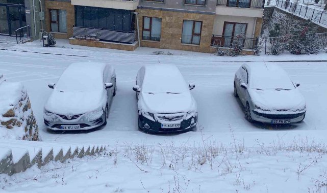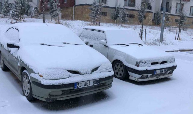 Meteorolojinin uyarı yaptığı Elazığ'da kar yapışı etkili oldu. Kent beyaza bürünürken, bazı araçlar yolda kaldı.