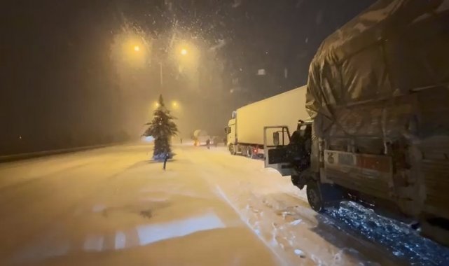 Elazığ'da sabah saatlerinde başlayan ve halen etkisini sürdüren kar yağışı sürücülere zor anlar yaşatmaya devam ediyor. Şiddetini arttıran kar yağışından dolayı Güney Çevre Yolu'ndan gelen çok sayıda tır, yolcu otobüsü ve otomobil yolda kaldı. O anlar ise bir vatandaş tarafından kayda alındı.