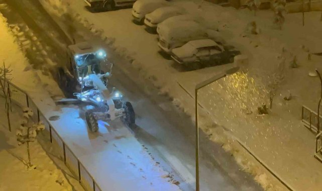 Meteorolojinin uyarı yaptığı Elazığ'da kar yağışı gece saatleri itibariyle etkisini artırırken Elazığ Belediyesi ekipleri çalışmalarını aralıksız sürdürüyor.
