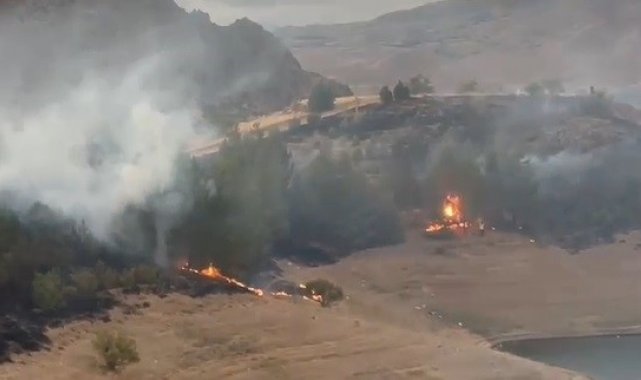 Elazığ'da kırsal alanda çıkan ve yayılan yangına ekiplerin müdahalesi sürüyor.