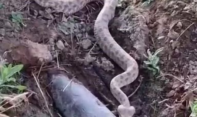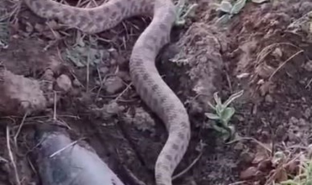 Elazığ'da koca engerek yılanı görüntülendi.