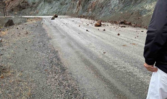 Elazığ'da yağışlarla birlikte Gökdere-Köklüce köy yolunda çökme ve kaya düşmesi meydana geldi.