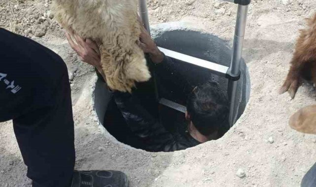 Elazığ'da kuyuya düşen keçi ve koyunları itfaiye kurtardı