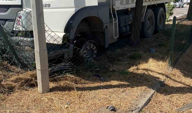 Elazığ'da seyir halindeyken lastiğinin patlaması sonucu kontrolden çıkan kamyon, yol kenarındaki tel örgülere çarparak durabildi. Yaşananlar güvenlik kameralarına yansıdı.