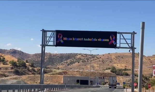Elazığ'da meme kanserinde erken teşhisin önemine dikkat çekmek amacıyla, Kömürhan Köprüsü pembe renklerle ışıklandırılırken dijital ekranlara sloganlar yerleştirildi.