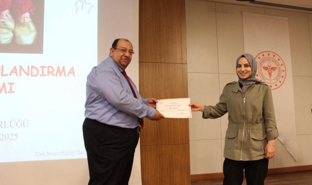 Elazığ İl Sağlık Müdürlüğü tarafından doğumda gelişebilecek yenidoğan mortalitesini ve asfiksinin yol açacağı sekelleri en aza indirebilmek üzere NRP uygulama eğitimi gerçekleştirildi. Fethi Sekin Şehir Hastanesi, Konferans Salonu'nda 24-26 Haziran 2025 tarihleri arasında olmak üzere üç gün devam eden eğitim programı sonunda çeşitli sağlık tesislerinden kursa katılan ve başarılı olan 47 kursiyere, düzenlenen törenle sertifikaları verildi. Törene, İl Sağlık Müdür Vekili Uzm. Dr. Ali Atar, hizmet başkanları, idareciler, akademisyenler, hastane başhekimleri, eğitmenler, kursiyerler ve sağlık çalışanları katıldı.