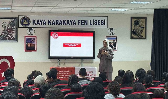 Elazığ Sosyal Hizmetler İl Müdürlüğü Şiddet Önleme ve İzleme Merkezi (ŞÖNİM) eğitimcileri tarafından Kaya Karakaya Fen Lisesi ve Ahmet Kabaklı Fen Lisesi'nde öğrenim gören öğrencilere, 'Kadına Şiddet' konulu bilgilendirme eğitimi düzenlendi.