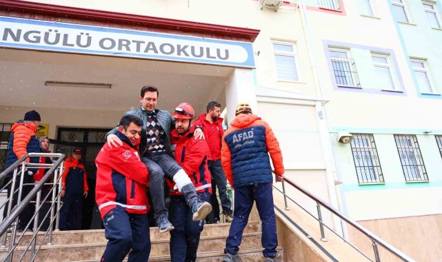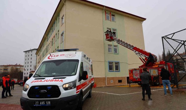 Elazığ'da İhsan Tangülü Ortaokulu'nda 1-7 Mart Deprem Haftası kapsamında deprem tatbikatı gerçekleştirildi.