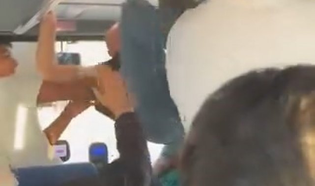 Olay, Yurtbaşı beldesi halk otobüsünde meydana geldi. Edinilen bilgiye göre, bir yolcuyla şoför arasında henüz bilinmeyen bir nedenle tartışma çıktı. Büyüyen tartışma kavgaya dönüştü. Tekme ve yumrukların havada uçuştuğu kavga, vatandaşların araya girmesiyle sona erdi. O anlar ise bir başka yolcunun cep telefonu kamerasına anbean yansıdı.