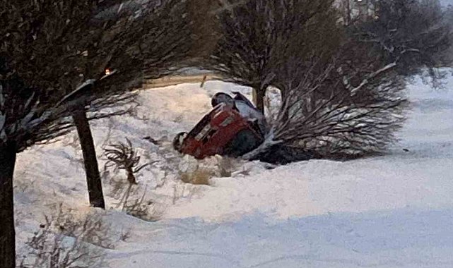 Elazığ'da otomobil, kar yağışından dolayı kayganlaşan yolda kayarak şarampole devrildi. Kazada yaralanan olmazken araçta maddi hasar meydana geldi.