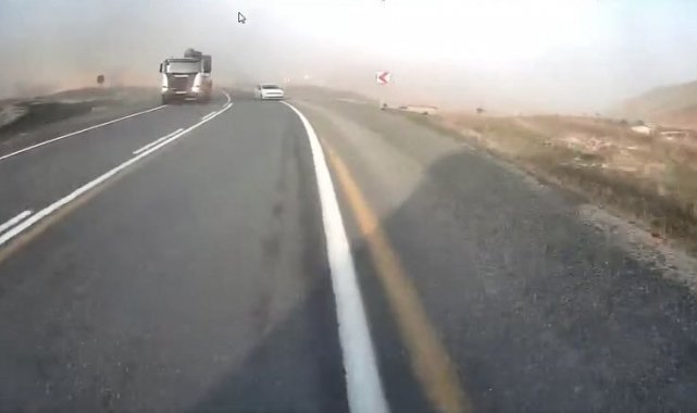Elazığ-Alacakaya yolunda hatalı sollama yapan bir otomobil, kazaya ramak kala durabildi. Karşı yönden gelen otomobil, kamyonun altında kalmaktan son anda kurtuldu. O anlar saniye saniye araç kamerasına yansıdı.