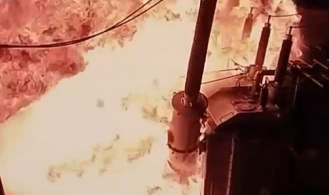 Elazığ'da TEİAŞ'a ait trafo patlayarak alevlere teslim oldu. O anlar kameralara yansıdı.