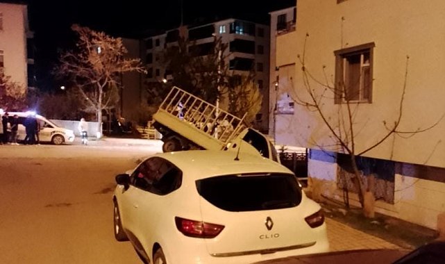 Elazığ'da pikap apartman bahçesine uçtu