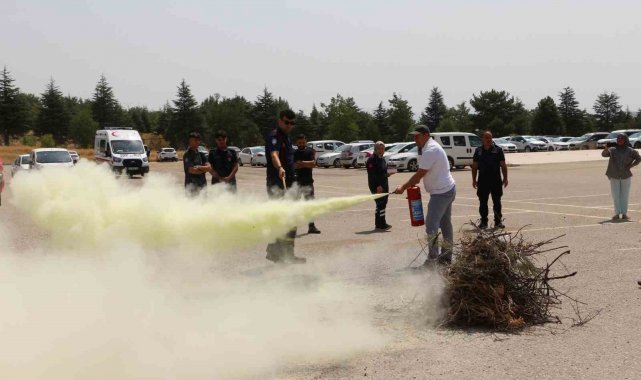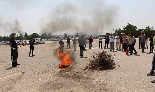 Tatbikat sonunda itfaiye ekipleri tarafından personele yangına ilk müdahale, yangın tüpü kullanımı ve alınacak tedbirler konusunda çeşitli bilgiler verildi.