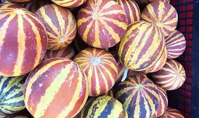Elazığ'da kokusu, tadı ve görüntüsüyle ile dikkat çeken şamama kavunu tezgahlarda yerini aldı.